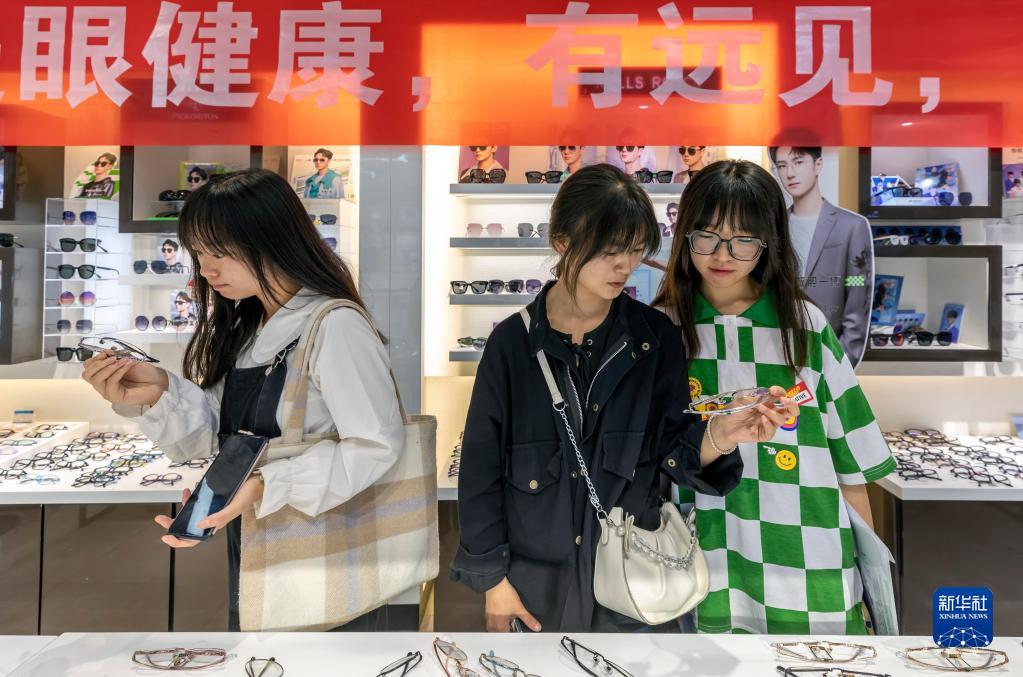 6月5日,學生在貴州省黔西市一家眼鏡店內選配眼鏡。新華社發(fā)(范暉 攝)