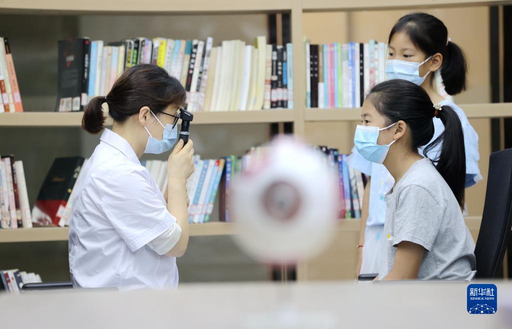 6月5日,學生在貴州省黔西市人民醫(yī)院眼科檢查視力。新華社發(fā)(范暉 攝)