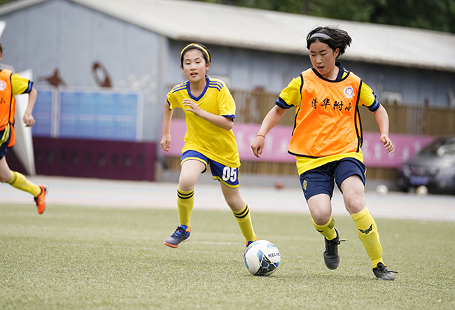 清華附小舉行的第十屆“馬約翰杯”足球聯(lián)賽,女生在比賽中拼搶。(資料圖片)(受訪者供圖)