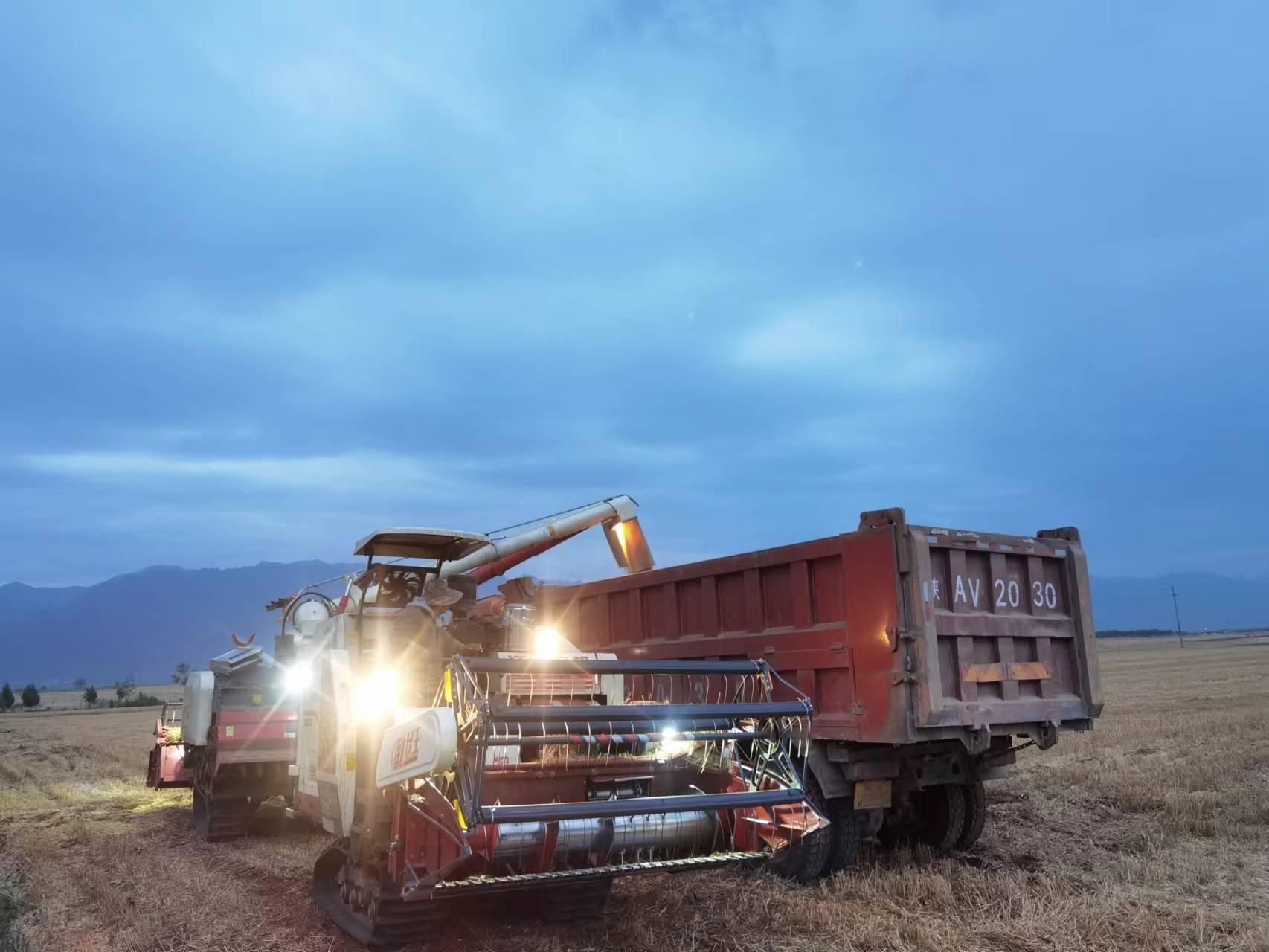 到了后半夜,要是實(shí)在困得不行,薛強(qiáng)就找距離收割機(jī)較遠(yuǎn)的地方躺一會(huì)兒。他把手機(jī)反扣在胸口,打開(kāi)手電筒提示農(nóng)機(jī)手有人別壓著。一會(huì)兒,薛強(qiáng)的鼾聲就與轟隆隆的收割機(jī)聲融為一體。