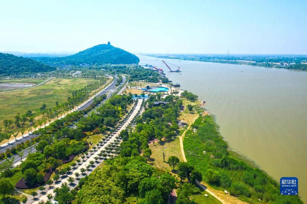安徽省馬鞍山市長(zhǎng)江岸線景觀帶(2022年5月17日攝,無(wú)人機(jī)照片)。新華社發(fā)