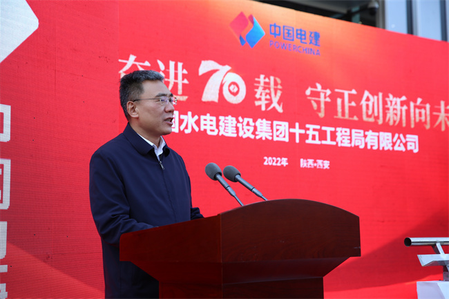 水電十五局黨委書記、董事長梁向峰發(fā)表致辭。他指出,70年來水電十五局緊緊跟隨共和國的腳步,以自帶風(fēng)雷的氣概與共和國一起成長,數(shù)代十五局人歷經(jīng)坎坷卻勇毅向前,在祖國大地建起了一項項雄美的工程!特別是黨的十八大以來的10年,著力推動企業(yè)高質(zhì)量發(fā)展,大力提升內(nèi)生能力,大力擴展業(yè)務(wù)布局,在區(qū)域及領(lǐng)域均形成大土木的業(yè)務(wù)結(jié)構(gòu),在產(chǎn)業(yè)鏈上不斷加快投資業(yè)務(wù)、總承包業(yè)務(wù)、融資加總承包業(yè)務(wù)等商業(yè)模式的構(gòu)建,國際業(yè)務(wù)遍布全球多個國家和地區(qū),總量占比全局的四分之一。以延安引黃、灃河治理,易俗社改造、興慶公園改造等項目為代表的新名片使十五局人更加自信。黨的二十大剛剛閉幕,中國的歷史翻開了新的一頁,特殊的日子,迎來建局70周年,同時入駐新的辦公大樓,在習(xí)近平新時代中國特色社會主義思想指引下,十五局人將在新時代的浪潮中倍加努力,再創(chuàng)輝煌!