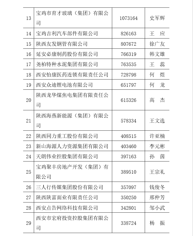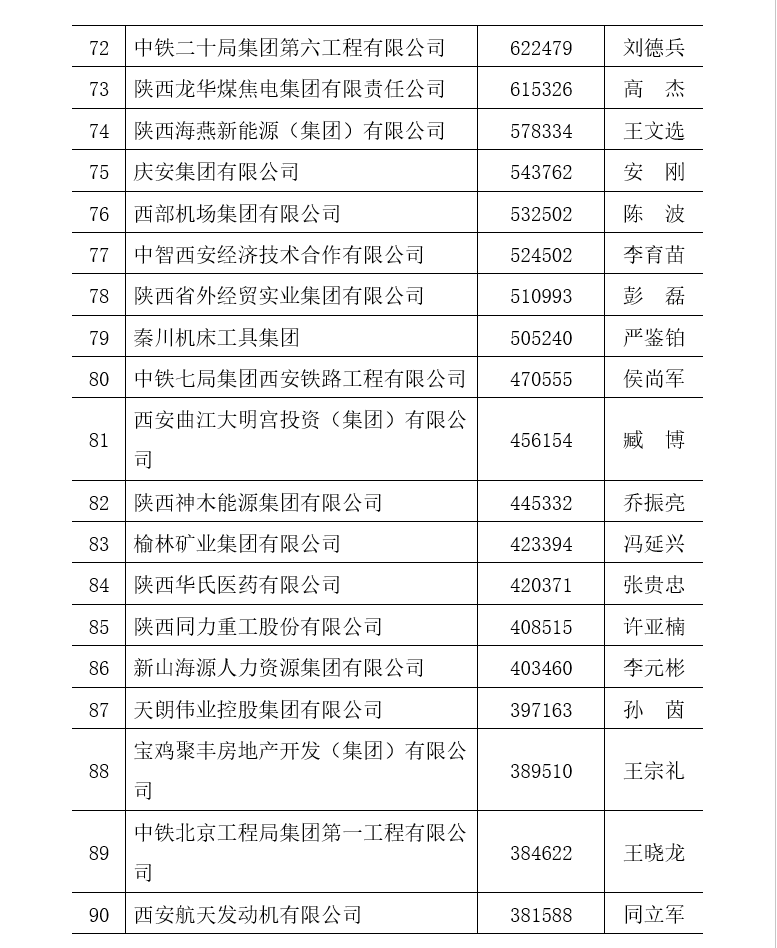 附件一:2022陜西企業(yè)100強排序名單