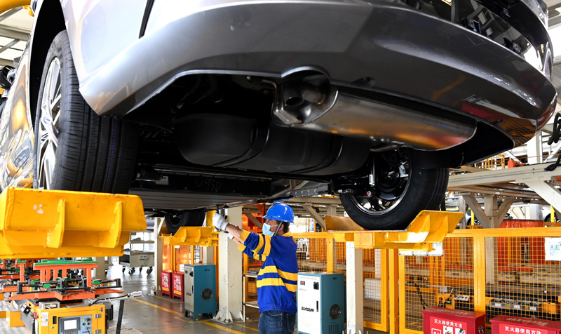 △工作人員在新能源汽車廠進行裝配(4月20日攝)。