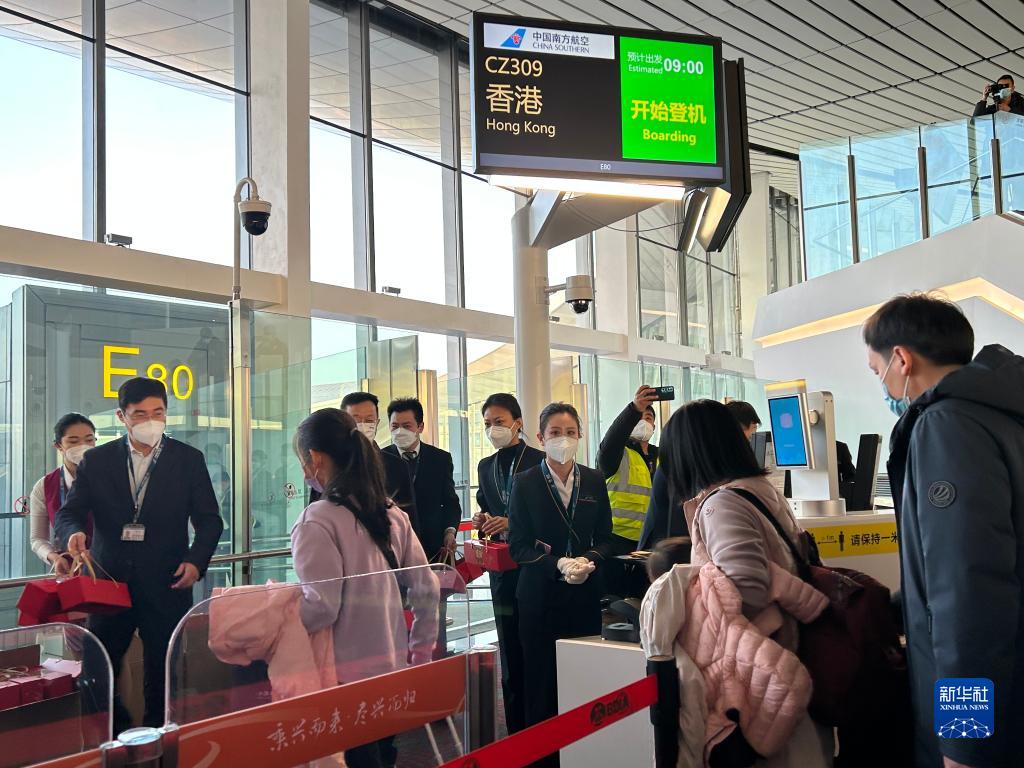 新華社北京1月17日電(記者羅鑫、吉寧)17日上午9時(shí)許,前往香港的CZ309航班搭乘100多名乘客騰空而起,中國“新國門”北京大興國際機(jī)場“暫停”近三年的國際及地區(qū)客運(yùn)航班“重啟”,國際及港澳臺(tái)地區(qū)客運(yùn)航線正式恢復(fù)。