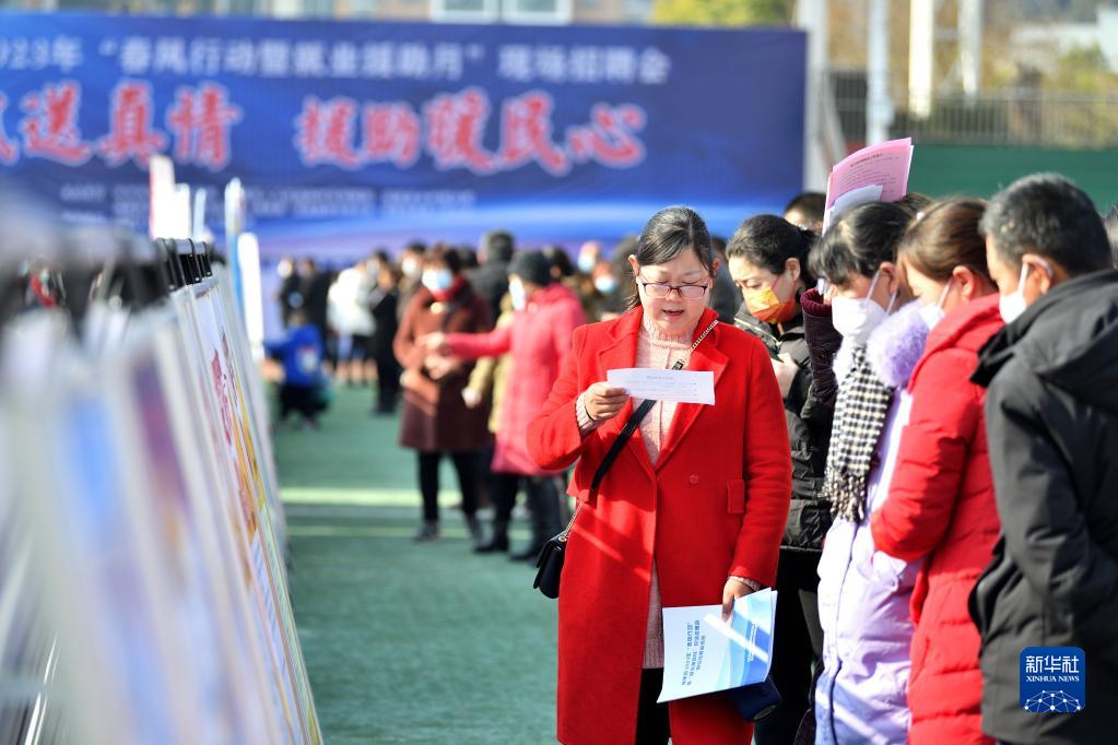 1月31日,求職者在湖北省襄陽市保康縣2023年春風(fēng)行動暨就業(yè)援助月現(xiàn)場招聘會上了解崗位信息。新華社發(fā)(楊韜攝)