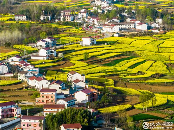 漢中:空中俯瞰油菜花海 春意盎然宛如畫卷