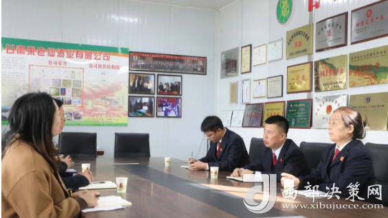 西部決策網訊(記者帥華鋒)  近日,甘肅省隴南市兩當縣法院黨組書記、院長鄧剛帶領黨組成員、副院長余淑芳、專委董高彥一行先后到兩當興源中藥飲片有限責任公司和甘肅果老仙酒業(yè)走訪調研。