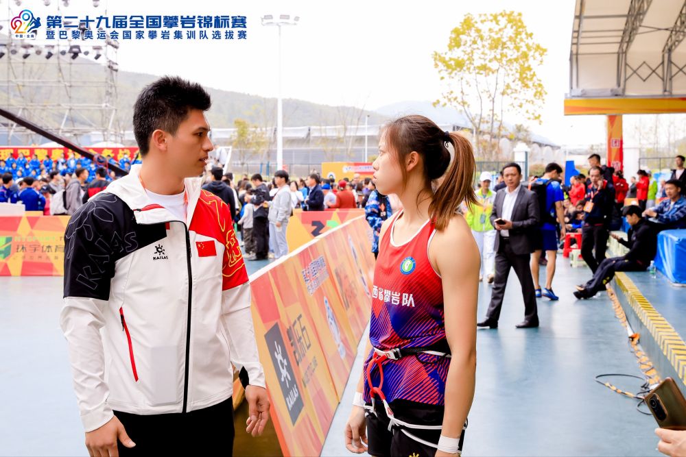 采訪最后,鐘齊鑫也表達(dá)了帶隊(duì)回到家鄉(xiāng)比賽的感慨。全南縣是他出生、成長(zhǎng)的地方?,F(xiàn)在,拿過世界冠軍也帶出過世界冠軍的他,已經(jīng)成了家鄉(xiāng)的“紅人”。19日,當(dāng)他和自己的冠軍弟子們出現(xiàn)在賽場(chǎng),現(xiàn)場(chǎng)觀眾的人數(shù)達(dá)到了開賽幾日來的最高峰。男子決賽進(jìn)入白熱化階段時(shí),現(xiàn)場(chǎng)掀起一波又一波“破五”的吶喊聲浪,贛南小城的觀眾們希望在家門口見證人類極限的突破。