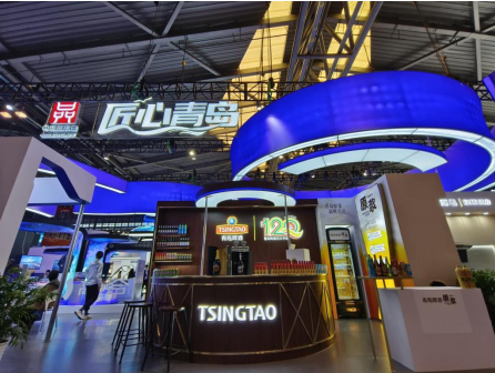 與往年展會不同,青島啤酒在展臺設(shè)計上,一枚紅、綠、金三色勾勒的120周年紀念標識,格外引人注目,試飲杯中、啤酒泡沫上,紀念標識的拉花與之呼應成趣。