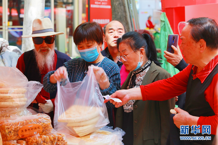 在第三屆陜西面食大會現(xiàn)場,觀眾購買面食鍋盔。新華網(wǎng) 楊喜龍 攝