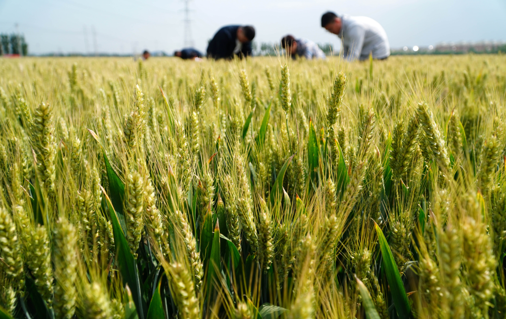 2023年5月24日,在山東省菏澤市巨野縣董官屯鎮(zhèn),高標(biāo)準(zhǔn)農(nóng)田里的小麥長勢良好豐收在望。新華社記者徐速繪 攝
