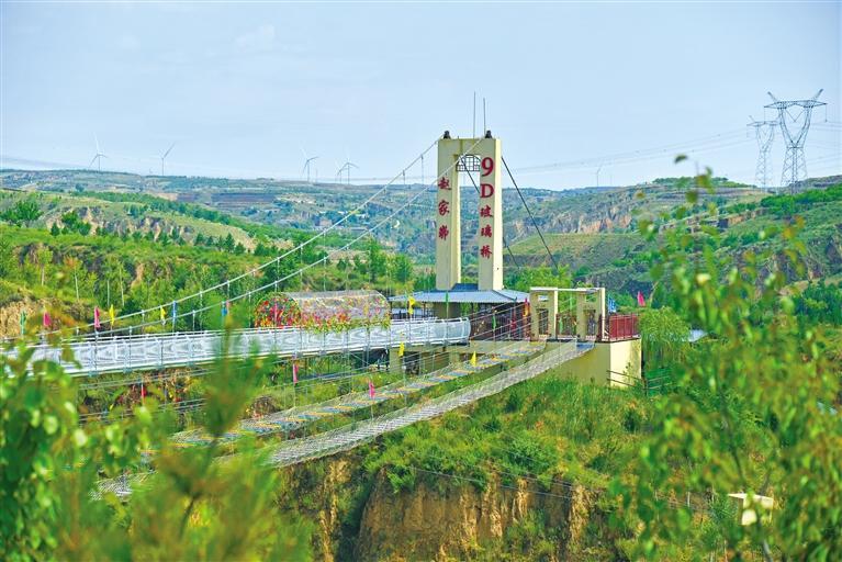 榆陽區(qū)古塔鎮(zhèn)趙家峁村的吊橋如今已成為“網(wǎng)紅打卡地”。 陜西農(nóng)村報記者 孫金龍攝