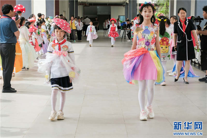 長(zhǎng)廊里,孩子們走起了野生菌環(huán)保時(shí)裝秀