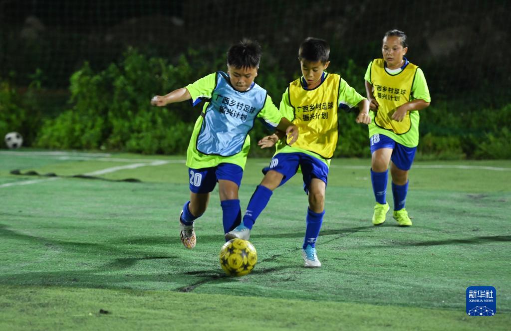 平地屯是位于廣西柳州市柳江區(qū)穿山鎮(zhèn)的一個(gè)小山村。8月7日晚,為期近1個(gè)月的平地屯暑期公益足球夏令營(yíng)結(jié)束,一場(chǎng)匯報(bào)訓(xùn)練成果的足球?qū)官愒诖謇锏木G茵場(chǎng)上打響,吸引眾多村民觀賽。2020年,平地屯的村民組成義務(wù)勞動(dòng)隊(duì),為孩子們修建專用足球場(chǎng),社會(huì)愛心人士為他們捐贈(zèng)了人工草坪、球門、球場(chǎng)照明燈等設(shè)施,公益足球教練定期免費(fèi)為孩子們培訓(xùn),眾人聯(lián)合起來,給村里喜歡足球的孩子們點(diǎn)燃了綠茵夢(mèng)想。