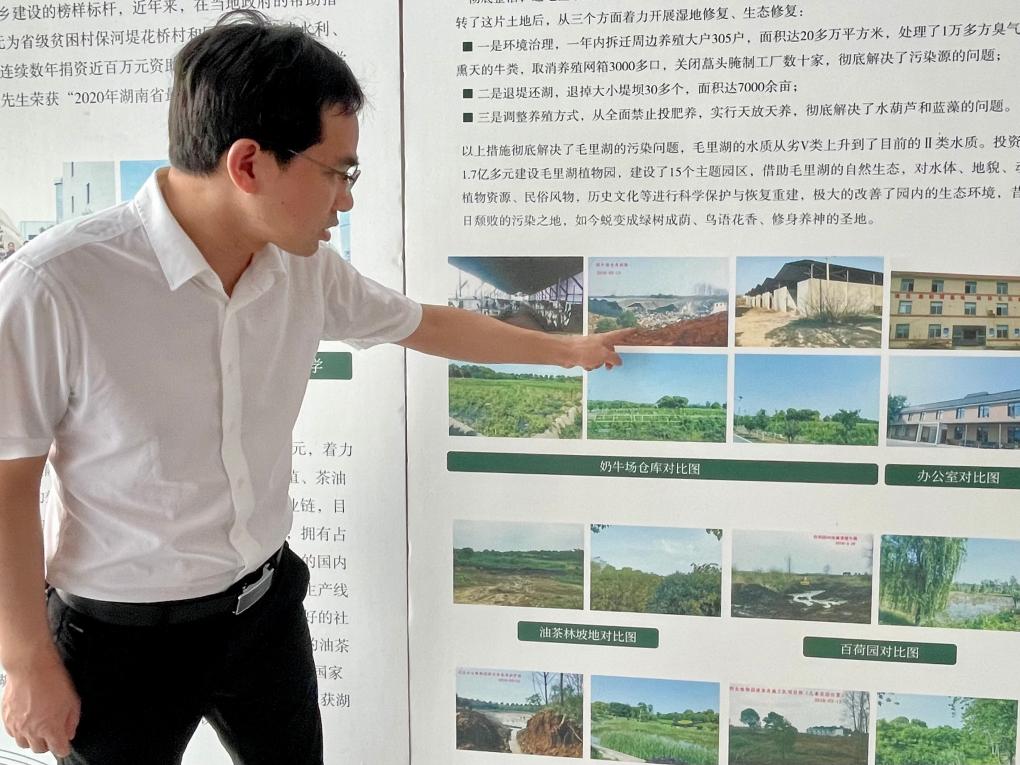在樹木蔥蘢、山環(huán)水繞的毛里湖植物園,一組照片顯示,記者腳下這片江南水鄉(xiāng)美景,過去竟是臟兮兮的“堆糞場”。植物園負責(zé)人袁竹炮說,數(shù)年前這里還是養(yǎng)殖糞便漫山、蚊蠅蟲鼠肆虐。經(jīng)過多年治理,成了市民親近自然、休閑度假的好去處。