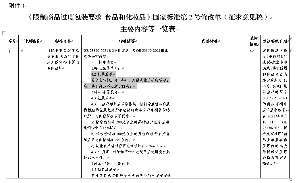 央視網(wǎng)消息:據(jù)工業(yè)和信息化部,根據(jù)國(guó)家標(biāo)準(zhǔn)委下達(dá)的強(qiáng)制性國(guó)家標(biāo)準(zhǔn)制修訂計(jì)劃,工業(yè)和信息化部組織完成了《限制商品過(guò)度包裝要求 食品和化妝品》強(qiáng)制性國(guó)家標(biāo)準(zhǔn)第2號(hào)修改單(征求意見(jiàn)稿)的編制工作。為進(jìn)一步聽取社會(huì)各界意見(jiàn),現(xiàn)對(duì)標(biāo)準(zhǔn)征求意見(jiàn)稿及編制說(shuō)明予以公示,截止日期2023年9月17日。