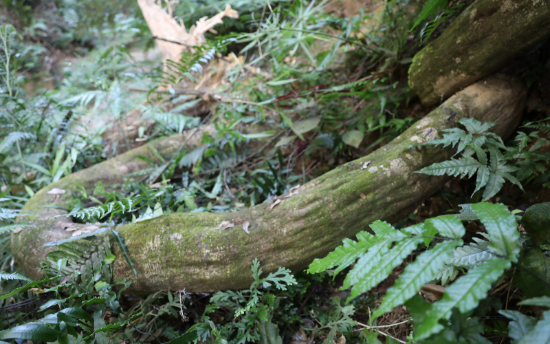 一片深山老林中,若沒有眼前這些無序的秋千般的古藤相伴,那絕不是健康完整的生態(tài)林,甚至有可能是人工經(jīng)濟(jì)林。它們,其中一部分被選擇性的保護(hù)下來,還有大量的頑強(qiáng)的競爭者被選擇性淘汰,這樣的經(jīng)濟(jì)林,它天生有基因缺陷。而一個不受破壞的原始生態(tài)林中,往往能代表這片綠色的名片恰恰不是那些高顏值的高大林木,反而是長相平常的桫欏,甚至是這些相貌古怪的藤蘿,它們身上有著更遠(yuǎn)古的基因,讓我們看見亙古以前的樣子。