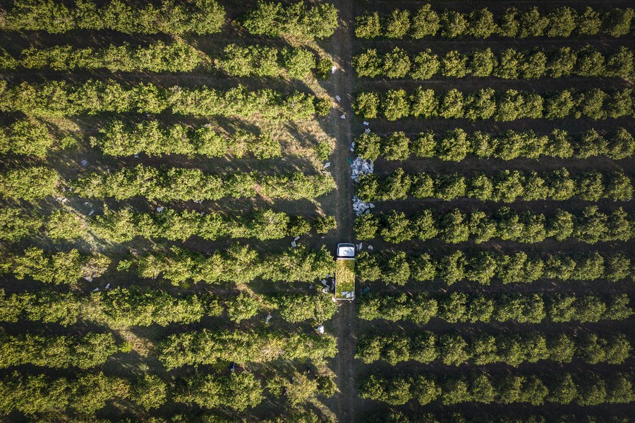 這是2023年5月24日在南非西北省拍攝的一處柑橘農(nóng)場(chǎng)(無(wú)人機(jī)照片)。(新華社發(fā),希拉茲·穆罕默德攝)