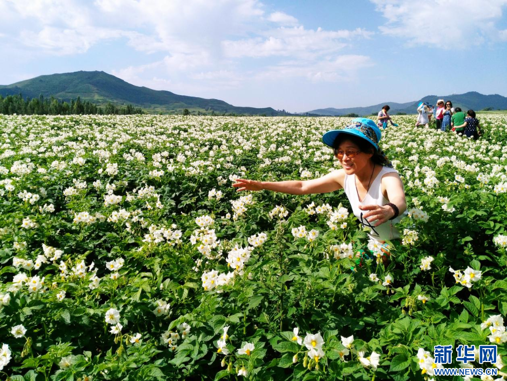 八月,青山環(huán)抱的黃土坡上,土豆花成團(tuán)成簇盛開,連成一片花海。