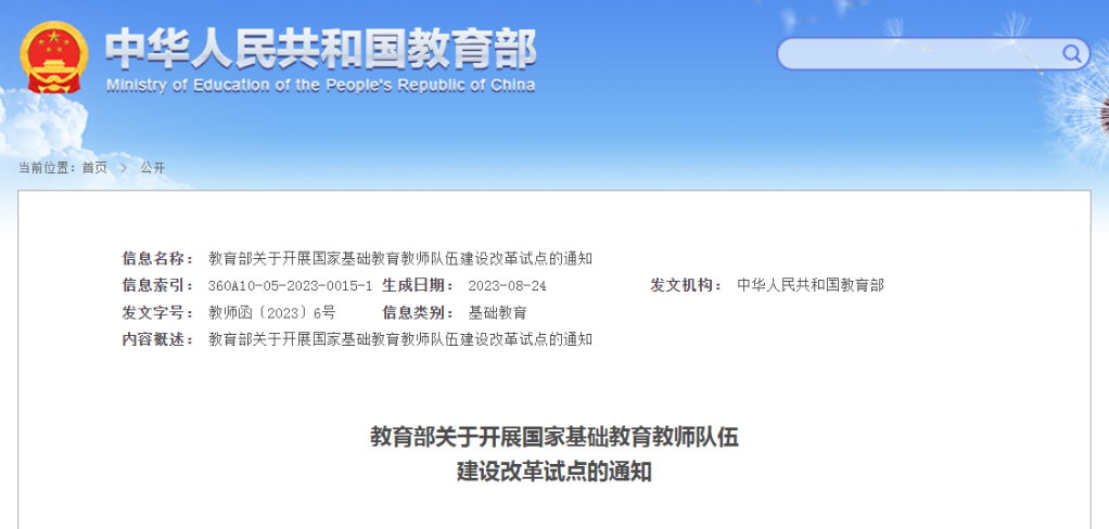 記者8月29日從教育部獲悉,教育部近日印發(fā)《教育部關(guān)于開展國(guó)家基礎(chǔ)教育教師隊(duì)伍建設(shè)改革試點(diǎn)的通知》,部署在上海市、山東省、青海省、福建省廈門市、湖南省常德市、黑龍江省黑河市嫩江市、浙江省溫州市甌海區(qū)、河南省商丘市永城市、廣西壯族自治區(qū)桂林市荔浦市、重慶市云陽(yáng)縣等省、市、縣10個(gè)地區(qū)開展國(guó)家基礎(chǔ)教育教師隊(duì)伍建設(shè)改革試點(diǎn)。試點(diǎn)時(shí)間自通知印發(fā)之日起計(jì)算,周期3年。