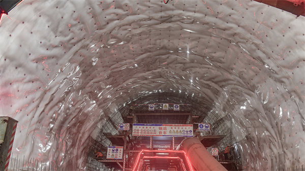 柳梧鐵路項目,配置的自行式液壓棧橋進行仰拱襯砌和仰拱填充施工,實現(xiàn)鋼筋綁扎、混凝土施工、養(yǎng)護等多工序平行作業(yè);配置的模板液壓定位系統(tǒng)和止水帶定位夾具,保證定位精度和施工效率的提高;使用防水板鋪掛臺車,實現(xiàn)4米寬幅防水板的鋪設,減少防水板搭接尺寸,降低防水板損耗率和提高作業(yè)效率。對標準化施工最具實際意義的是采用的全液壓自動澆筑襯砌模板臺車,其主要由模板系統(tǒng)、門架系統(tǒng)、輔助操作系統(tǒng)、支撐系統(tǒng)、分料系統(tǒng)、平移頂升機構(gòu)、行走系統(tǒng)組成,通過增設調(diào)節(jié)塊,能適用不同加寬值斷面隧道拱墻襯砌施工;二方面,其前端創(chuàng)新地使用可調(diào)式高分子堵頭模,就具備止水帶定位和固定功能;三是平臺設計自動布料系統(tǒng),能夠?qū)崿F(xiàn)逐窗灌注;四是頂部設置徑向注漿、溢漿、排氣裝置,滿足了帶模注漿工藝;五是端頭采用軟搭接,防止頂裂上一板混凝土,為保證混凝土質(zhì)量提供了保險。