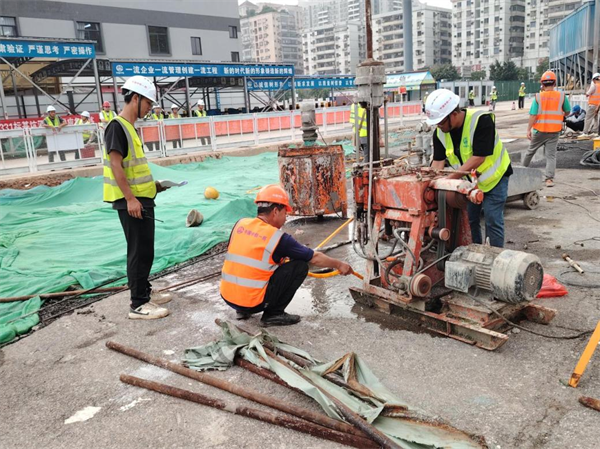 演練模擬項(xiàng)目車站在深基坑土方開挖過程中出現(xiàn)涌水涌泥緊急情況,接到“險(xiǎn)情”匯報(bào)后,項(xiàng)目負(fù)責(zé)人歐瓊第一時(shí)間迅速啟動(dòng)應(yīng)急預(yù)案,立即組織疏散警戒組人員到達(dá)現(xiàn)場(chǎng)緊急疏散人群,做好警戒,確保搶險(xiǎn)道路暢通。應(yīng)急演練從發(fā)現(xiàn)險(xiǎn)情、啟動(dòng)應(yīng)急預(yù)案、應(yīng)急搶險(xiǎn)到恢復(fù)正常生產(chǎn)秩序,時(shí)長(zhǎng)近60分鐘,啟用各類車輛、機(jī)械10多輛(臺(tái))。演練人員聞警而動(dòng),各個(gè)環(huán)節(jié)緊密銜接,各職能部門密切配合,處置得當(dāng),搶險(xiǎn)反應(yīng)迅速,在短時(shí)間內(nèi)完成了搶險(xiǎn)救援工作,整個(gè)演練過程緊張有序,取得了良好的效果。