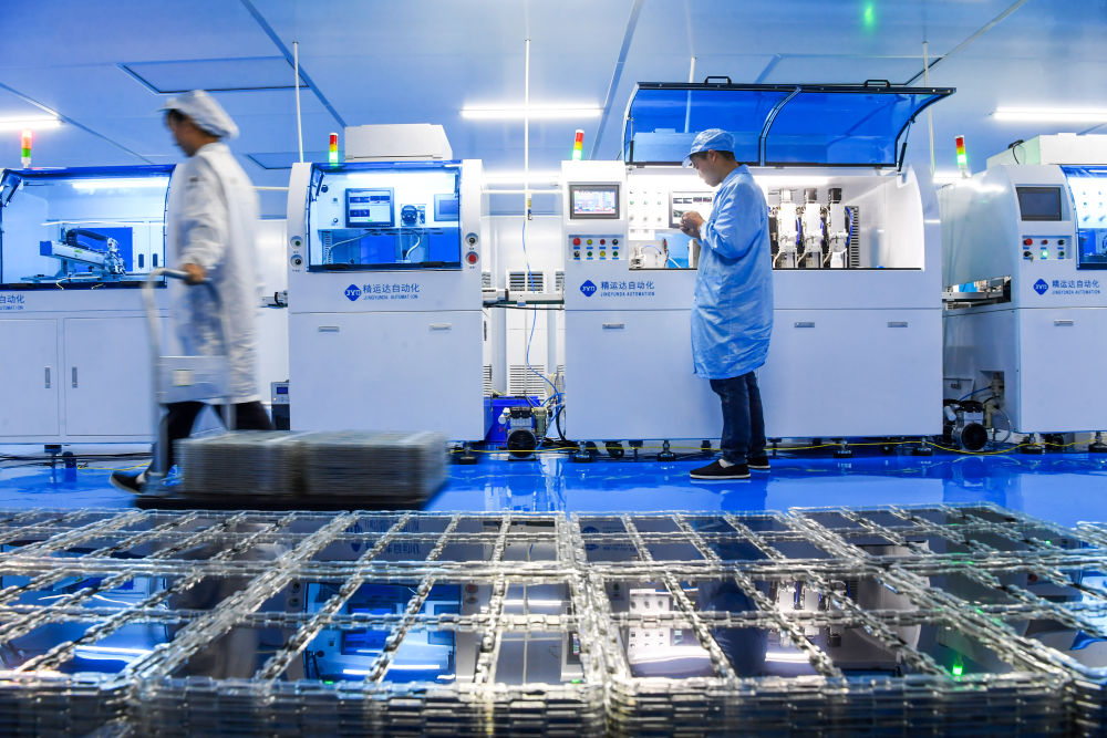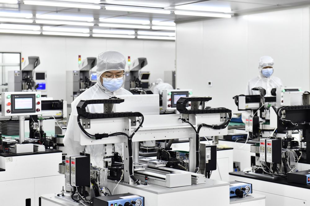 2023年6月29日,在山東省日照高新技術產業(yè)開發(fā)區(qū)智慧微電產業(yè)園,工作人員在生產濾波器。新華社記者 郭緒雷 攝