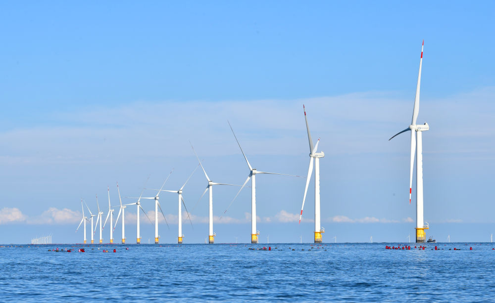 2023年9月13日拍攝的遼寧大連莊河海上風電項目。新華社記者 楊青 攝