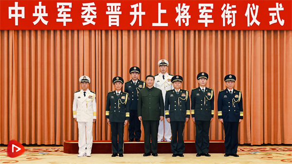 上午11時許,晉銜儀式在莊嚴的國歌聲中開始。中央軍委副主席張又俠宣讀了中央軍委主席習近平簽署的晉升上將軍銜命令。中央軍委副主席何衛(wèi)東主持晉銜儀式。