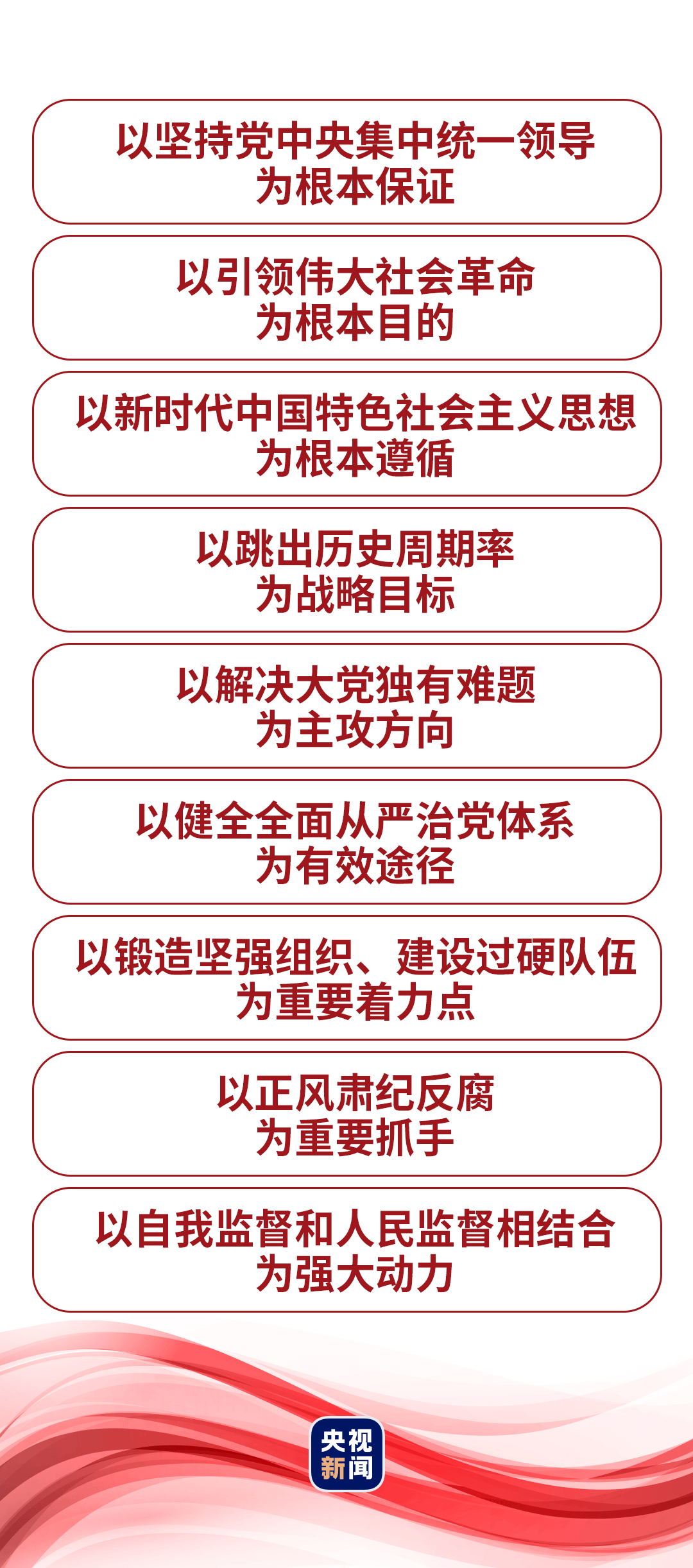 “黨的十八大以來,在推進(jìn)全面從嚴(yán)治黨的偉大實(shí)踐中,我們不斷進(jìn)行實(shí)踐探索和理論思考,在毛澤東同志當(dāng)年給出‘讓人民來監(jiān)督政府’的第一個(gè)答案基礎(chǔ)上,給出了第二個(gè)答案,那就是不斷推進(jìn)黨的自我革命。”2024年1月8日,在二十屆中央紀(jì)委三次全會(huì)上,習(xí)近平總書記發(fā)表重要講話,深刻闡述黨的自我革命的重要思想,明確提出“九個(gè)以”的實(shí)踐要求,為新時(shí)代新征程深入推進(jìn)全面從嚴(yán)治黨、黨風(fēng)廉政建設(shè)和反腐敗斗爭(zhēng)提供根本遵循。