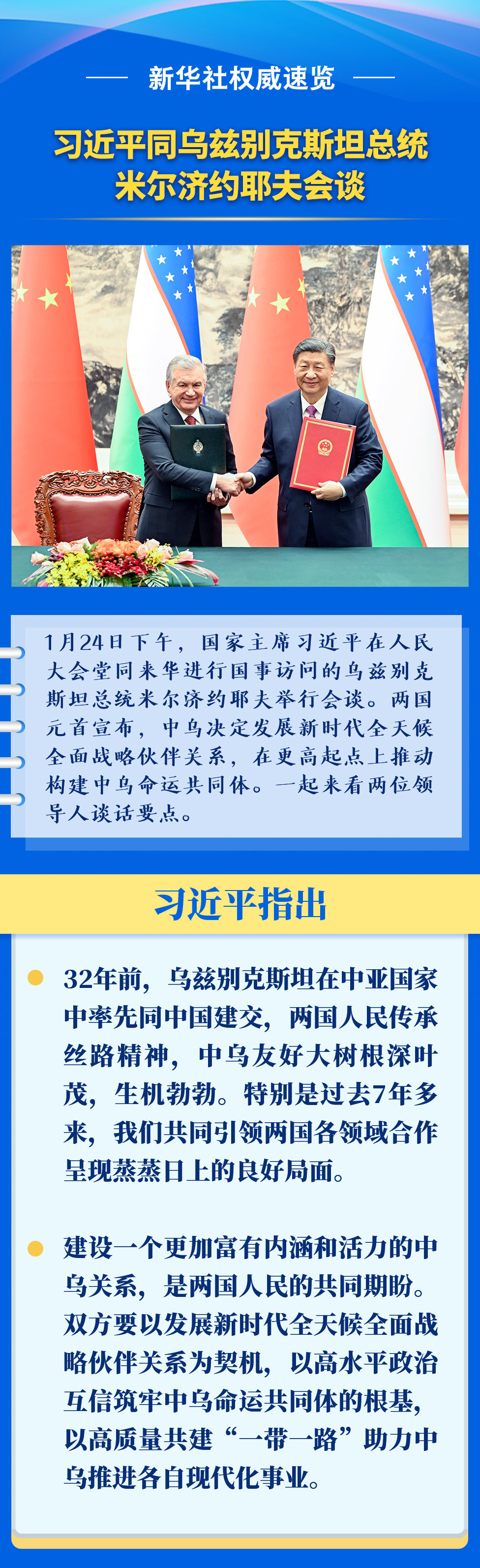 新華社權(quán)威速覽 | 習(xí)近平同烏茲別克斯坦總統(tǒng)米爾濟(jì)約耶夫會談