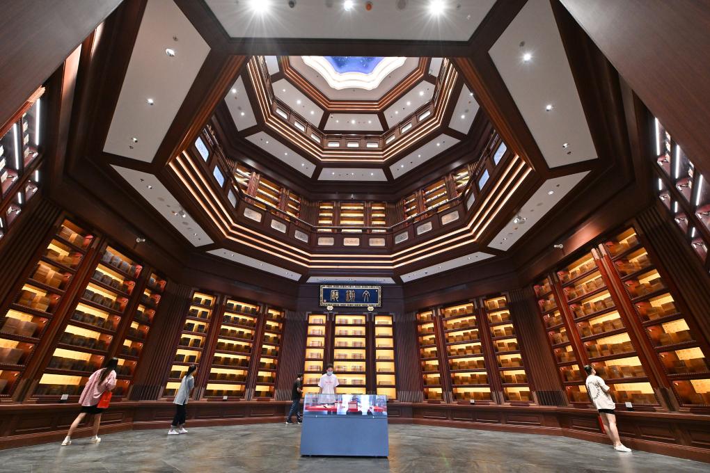 2022年7月30日,觀眾在中國國家版本館中央總館文瀚廳內(nèi)參觀。當(dāng)日,中國國家版本館開館暨展覽開幕式在中國國家版本館中央總館舉行。新華社記者 李鑫 攝