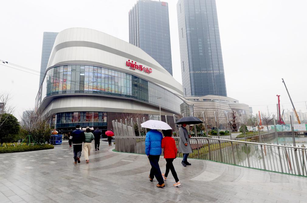2024年1月20日市民走向上海市普陀區(qū)一家購(gòu)物中心。新華社記者方喆 攝