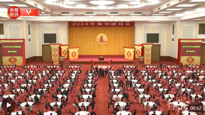 中共中央、國(guó)務(wù)院8日上午在人民大會(huì)堂舉行2024年春節(jié)團(tuán)拜會(huì)。中共中央總書記、國(guó)家主席、中央軍委主席習(xí)近平發(fā)表講話,代表黨中央和國(guó)務(wù)院,向全國(guó)各族人民,向香港特別行政區(qū)同胞、澳門特別行政區(qū)同胞、臺(tái)灣同胞和海外僑胞拜年。