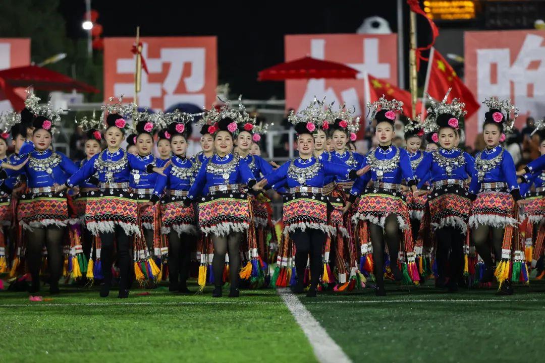 △2024年2月3日,2024年全國“村晚”示范展示活動暨貴州“村超村晚”系列活動之一的民族文化展演,在榕江縣“村超”足球場舉行。
