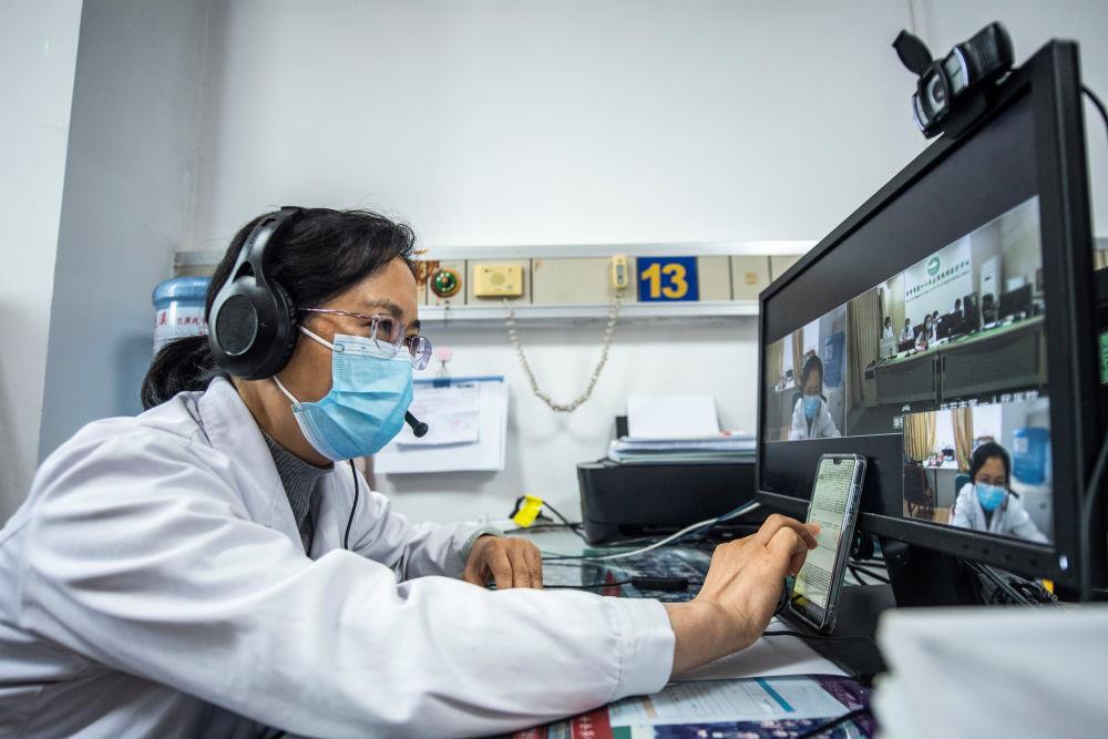△2022年3月30日,貴州省人民醫(yī)院專家在和畢節(jié)市第一人民醫(yī)院醫(yī)生進(jìn)行遠(yuǎn)程醫(yī)療會診。