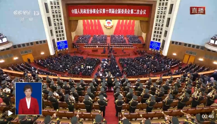 獨家視頻丨全國政協(xié)十四屆二次會議開幕 全場高唱國歌