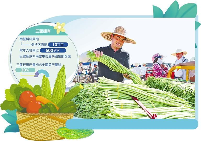 三亞蔬果業(yè)繁榮有賴于南繁種業(yè)基地的賦能。三亞擁有南繁科研用地保護區(qū)面積10萬畝,常年入駐單位達600多家,已逐漸成為南繁單位最為密集的區(qū)域。每年冬春,來自全國各大農(nóng)業(yè)科研機構(gòu)的6000名專家人才匯聚于此,田地間、實驗室、人才小院處處可見他們的身影,培育出最適合生長在三亞市崖州區(qū)這片土地上的“致富苗”。