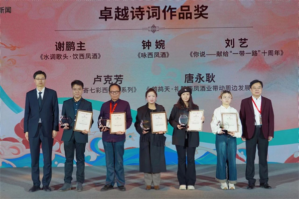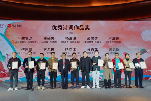會上,王士祥、李曉東分別作了題為《詩詞山河—古典詩詞與酒》《當(dāng)代生活與傳統(tǒng)詩詞》的主題演講;網(wǎng)易文化高級主編章劍鋒公布比賽情況,與會領(lǐng)導(dǎo)為獲獎詩詞作品頒獎;獲獎代表蔡瑞義、鐘婉、伍思鵬分別作了發(fā)言;獲獎作品進(jìn)行了現(xiàn)場表演展示。