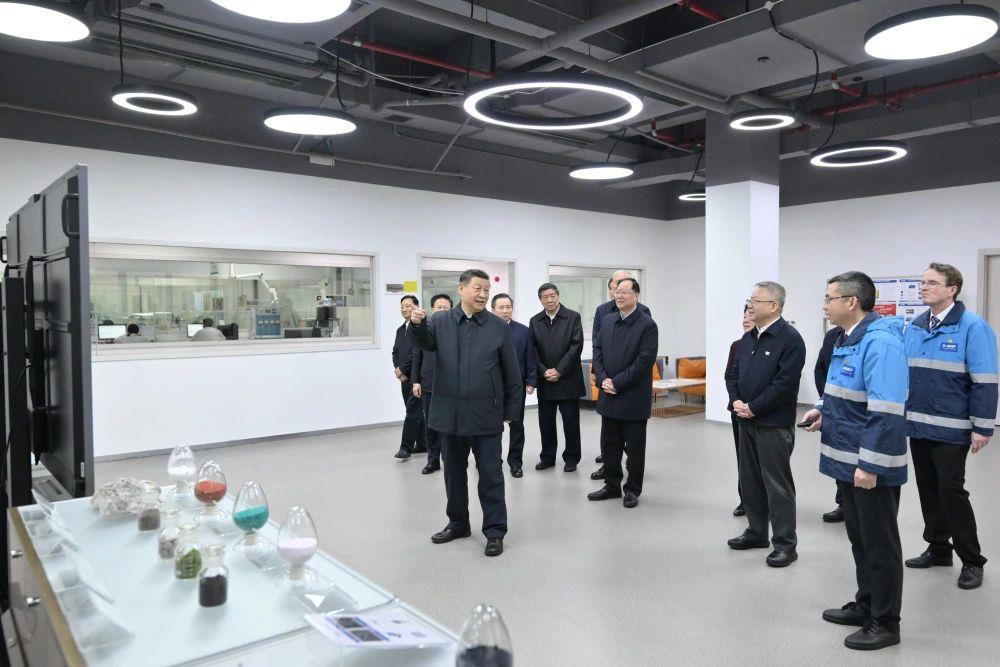 △2024年3月18日,習(xí)近平總書(shū)記在中德合資企業(yè)巴斯夫杉杉電池材料有限公司考察。